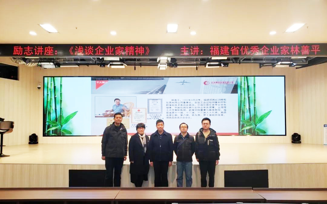 2020年12月28日下午4時30分,福建順昌虹潤精密儀器有限公司董事長、全國工業(yè)過程測量和控制標(biāo)準(zhǔn)化技術(shù)委員會委員、中國儀器儀表學(xué)會常務(wù)理事、中國儀器儀表行業(yè)協(xié)會常務(wù)理事,上海理工大學(xué)兼職教授、武夷學(xué)院董事與客座教授,福建省第十一屆、十二屆、十三屆人大代表林善平先生應(yīng)建陽一中邀請,在該校圖書館報告廳給全體高二師生800余人作《淺談企業(yè)家精神》專題講座。講座由福建省人大代表、黃景青校長主持。