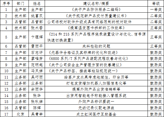虹潤公司2020年度合理化建議獲獎(jiǎng)名單