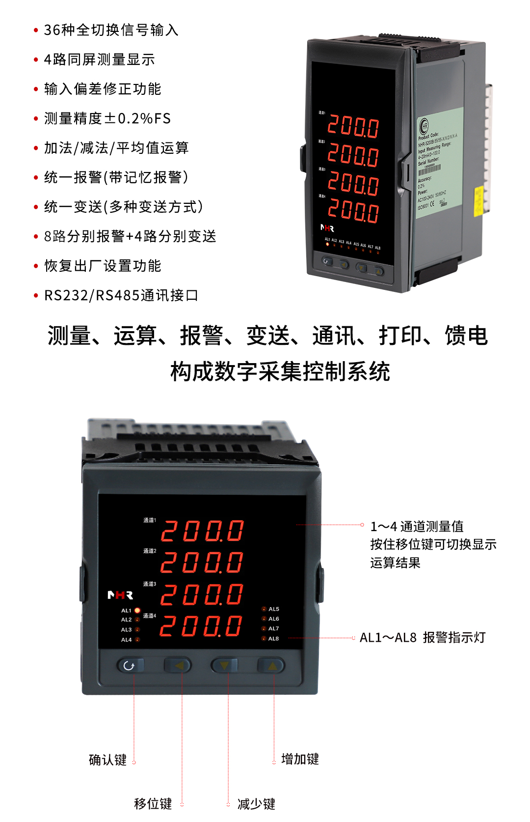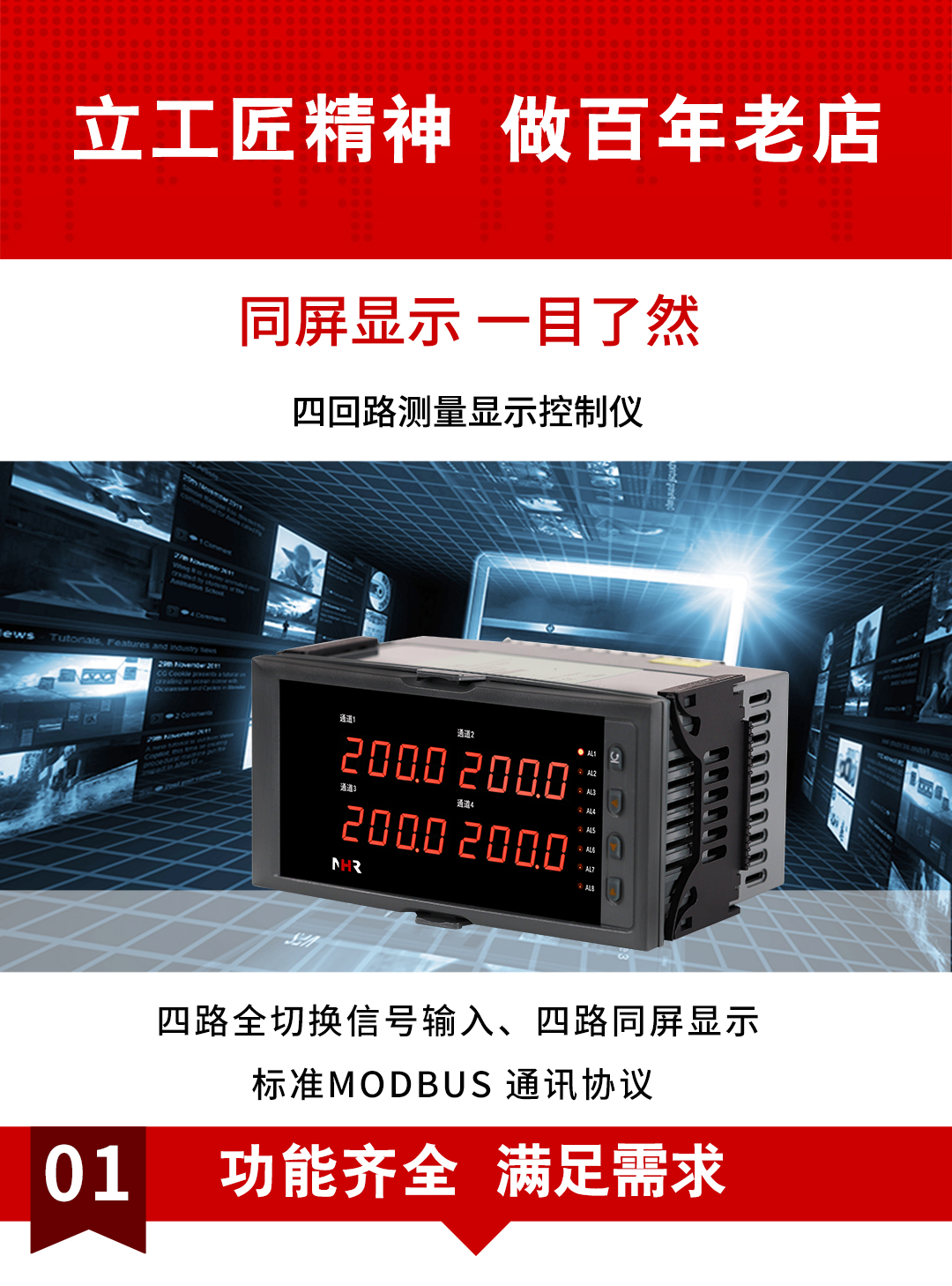 NHR-5740系列四回路測量顯示控制儀針對現(xiàn)場溫度、壓力、液位、速度等各種信號進行采集、顯示、控制、遠傳、通訊、 打印等處理,構成數(shù)字采集系統(tǒng)及控制系統(tǒng)。