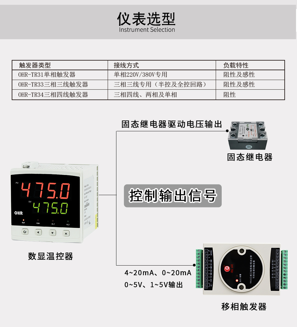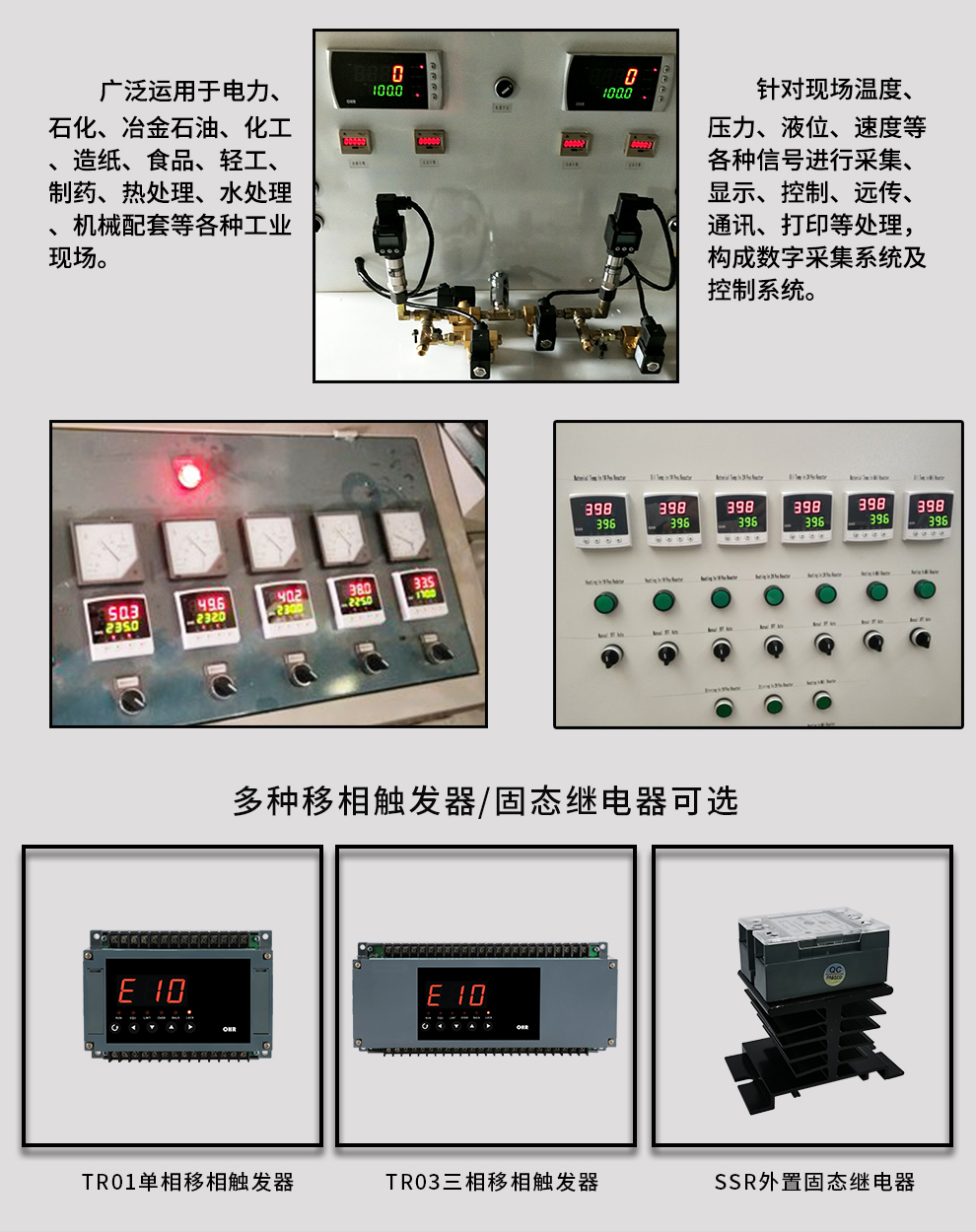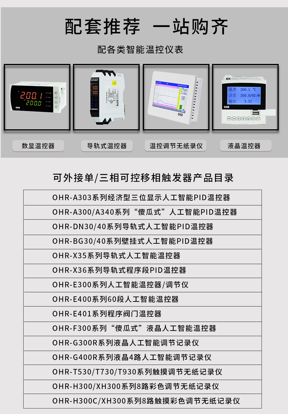OHR-TR30系列移相觸發(fā)器是應(yīng)用了單片機(jī)技術(shù)的智能化單/三相移相觸發(fā)器,功能強(qiáng)大且可靠性高,能適應(yīng)各種 電阻絲、硅碳棒及負(fù)載采用變壓器降壓的硅鉬棒、鎢絲等各種類型工業(yè)電爐,也可用于電機(jī)軟啟動的控制。