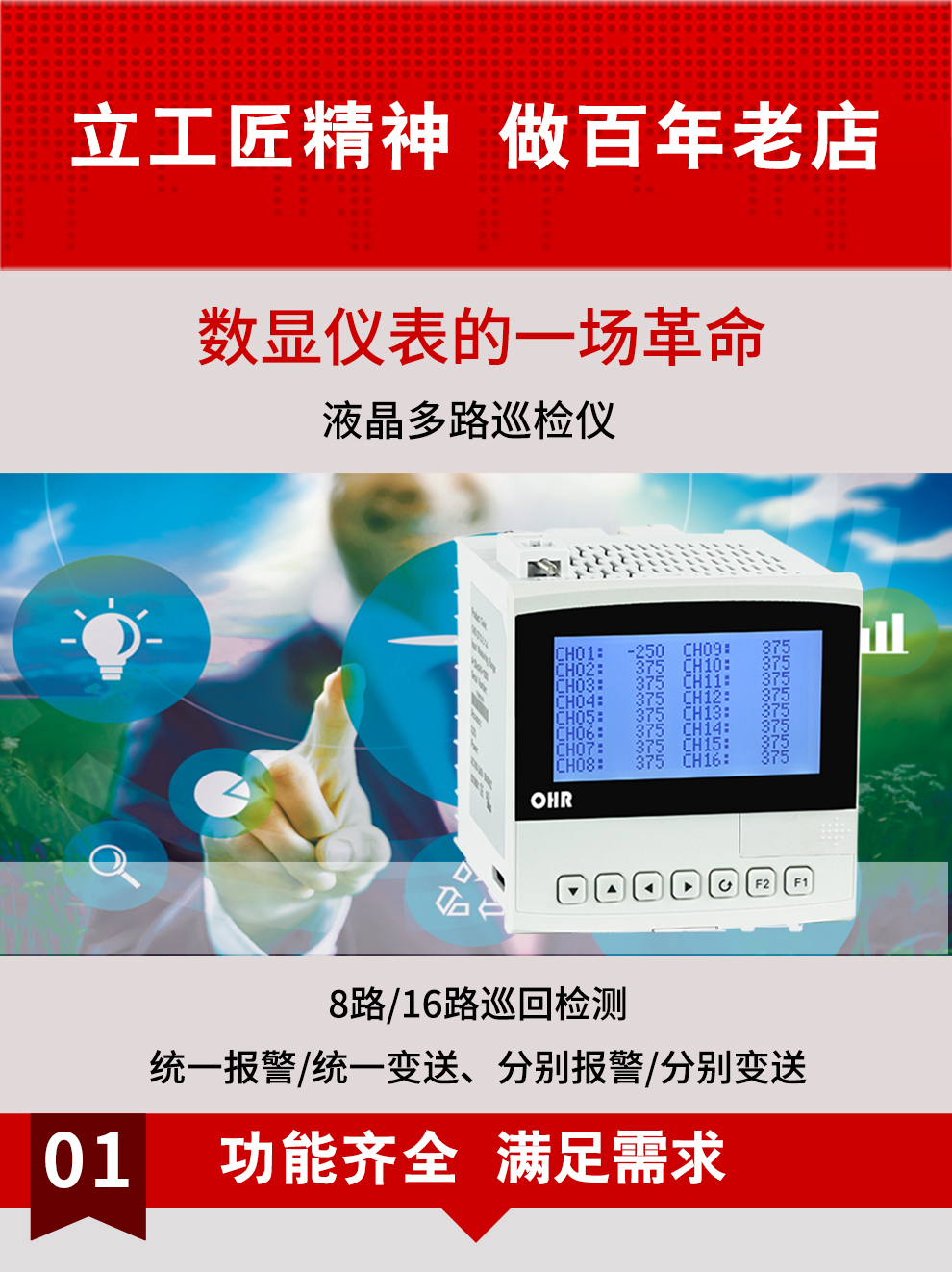 OHR-G700系列液晶多回路測量顯示控制儀針對現(xiàn)場溫度、壓力、液位、速度等各種信號進(jìn)行采集、顯示、控制、遠(yuǎn)傳、通訊、打印等處理。