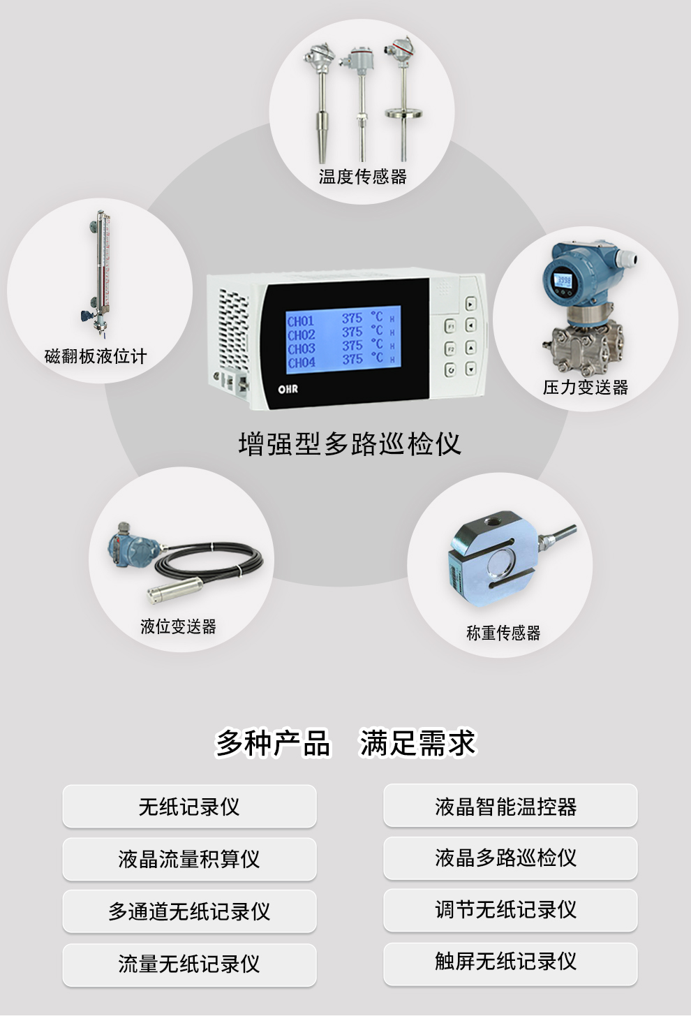 OHR-G702系列增強型液晶多回路測量顯示控制儀針對現(xiàn)場溫度、壓力、液位、速度等各種信號進行采集、顯示、控制、遠傳、通訊、打印等處理