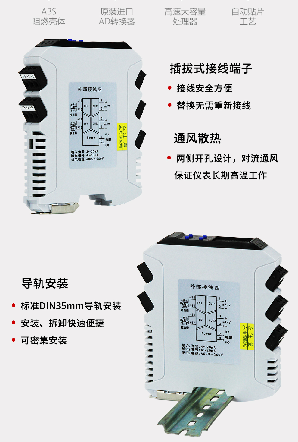 OHR-X33系列導(dǎo)軌式智能配電器給二、三線制變送器提供隔離的電源電壓,將變送器產(chǎn)生的直流電壓電流信號,經(jīng)本隔離器轉(zhuǎn)換成所需的輸出信號至控制系統(tǒng)。寬電源設(shè)計:20-260V交直流供電。配置高清顯示單元,通過輕觸按鍵設(shè)置每個通道的參數(shù)及每個通道之間的切換。