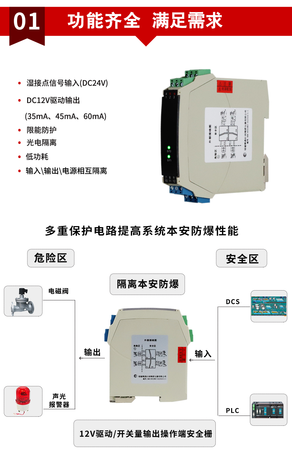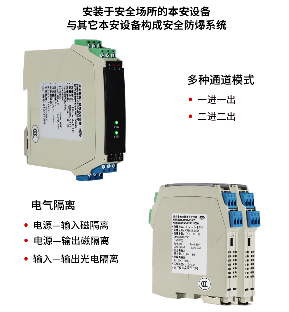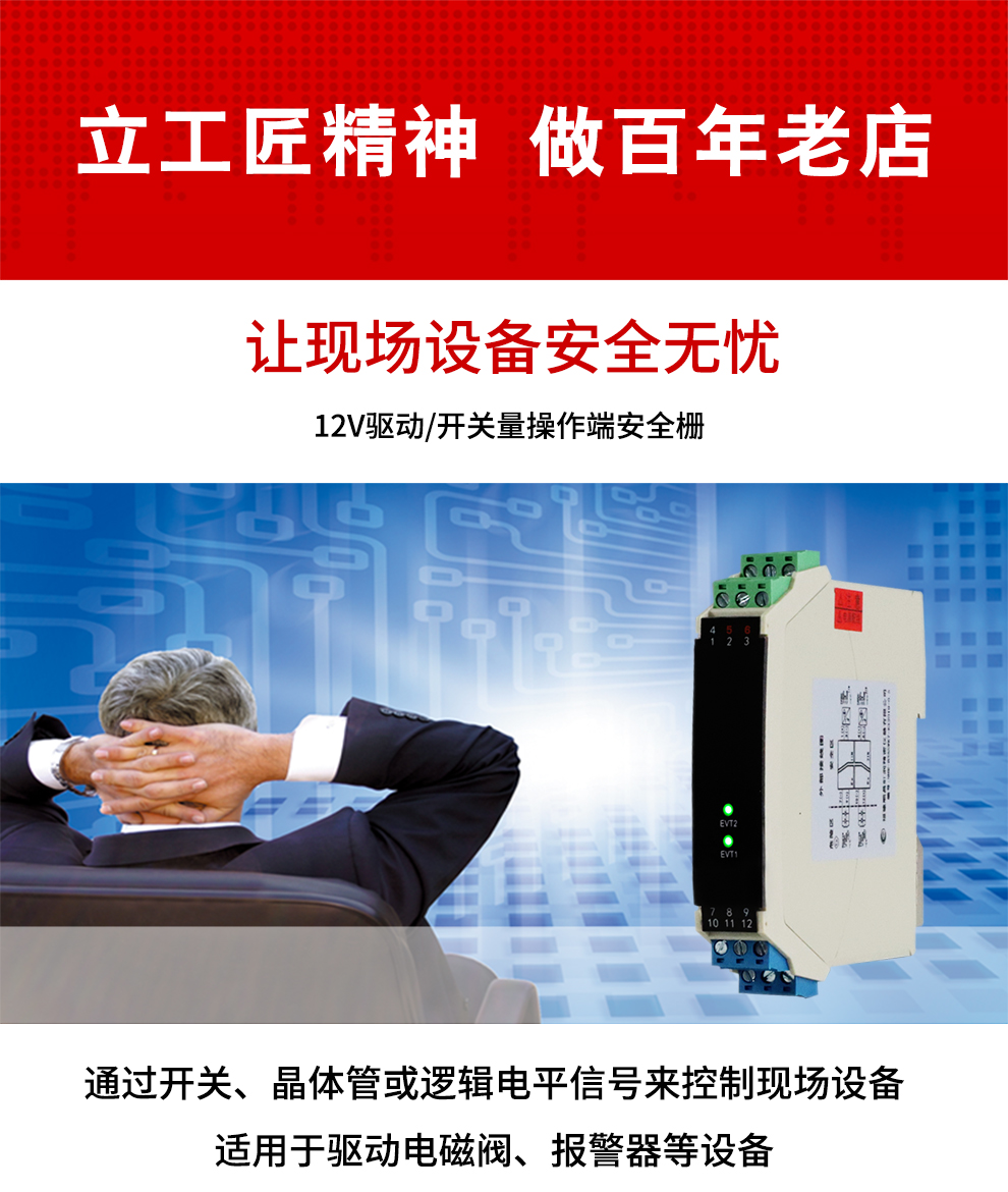OHR-B35系列12V驅(qū)動(dòng),開關(guān)量輸出操作端隔離柵將安全區(qū)的電源通過開關(guān)控制,驅(qū)動(dòng)危險(xiǎn)區(qū)的現(xiàn)場本安設(shè)備,它允許控制開關(guān)直接連接到24V供電回路的任一端。本產(chǎn)品適用于驅(qū)動(dòng)如電磁閥、聲光報(bào)警等本安設(shè)備。