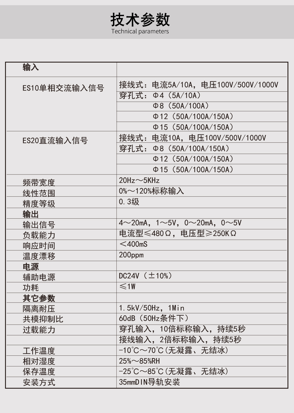 OHR-ES20系列直流電壓/電流變送器對電網和電路中的直流電壓或電流信號進行實時測量,將其變換為直流電 壓電流信號輸出;具有高精度、高隔離、低漂移、低功耗、體積小、響應快、抗干擾能力強等特點。本產品采用 卡標準DIN35mm導軌安裝,,適用于電力系統(tǒng)、郵電系統(tǒng)、鐵路監(jiān)測系統(tǒng)等的實時檢測。