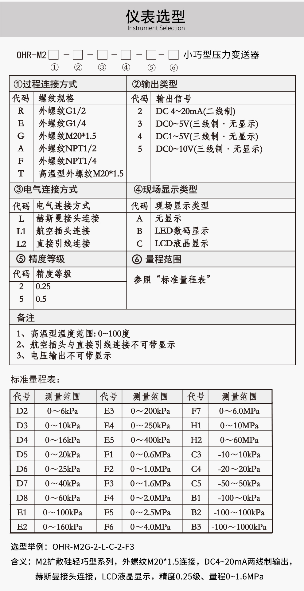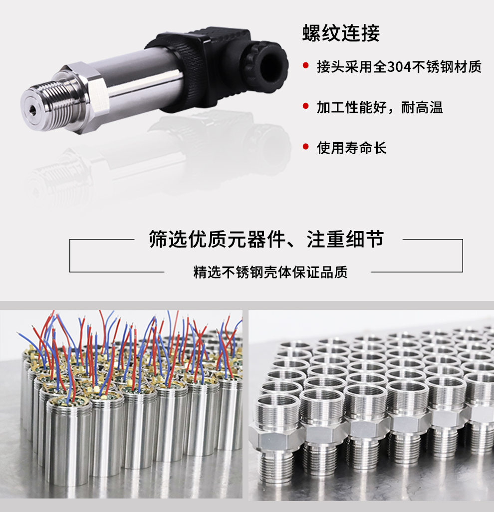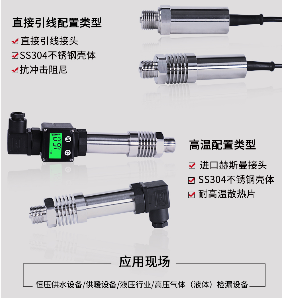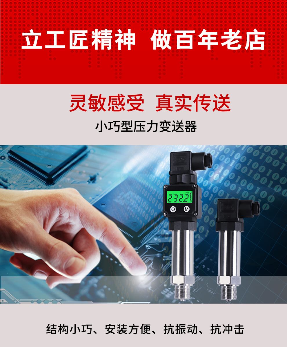 M系列小巧型壓力變送器內(nèi)部使用擴(kuò)散硅壓阻式傳感器,其結(jié)構(gòu)簡(jiǎn)單,體積小巧,易安裝;以其優(yōu)良的可靠性、適用性、靈活性和多樣性,廣泛的應(yīng)用于航空、航天、石油、化工、冶金、電力、水利等工業(yè)過(guò)程現(xiàn)場(chǎng)的壓力測(cè)量和控制。