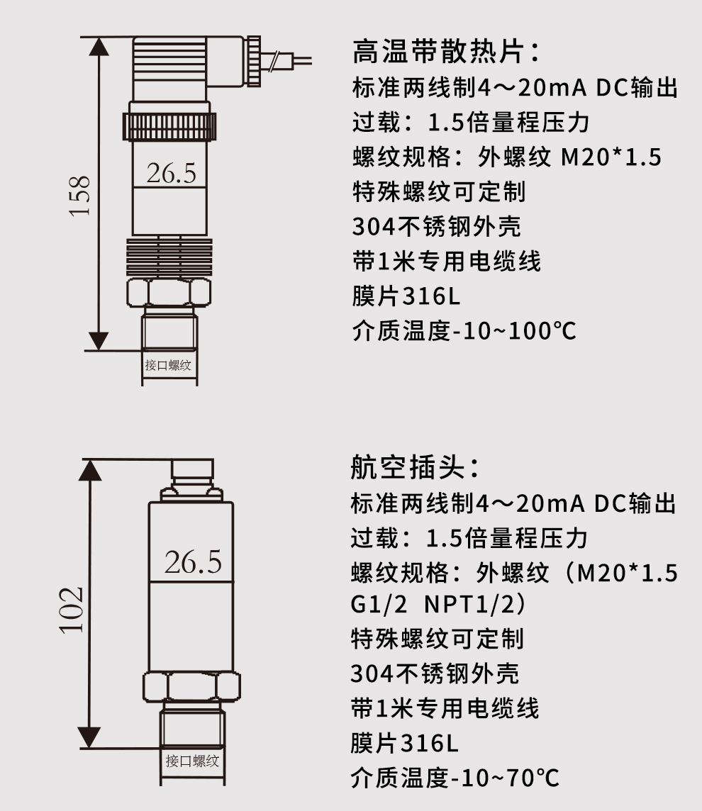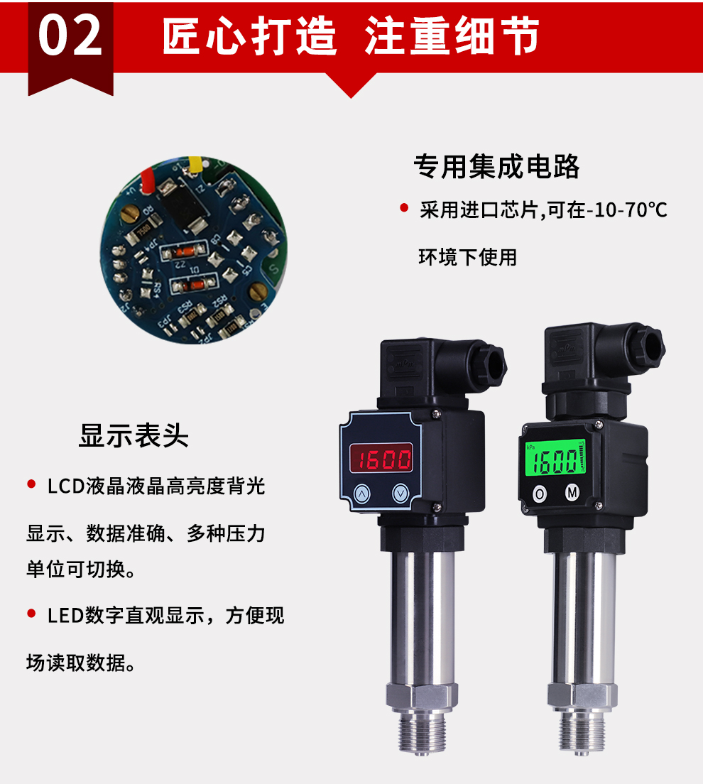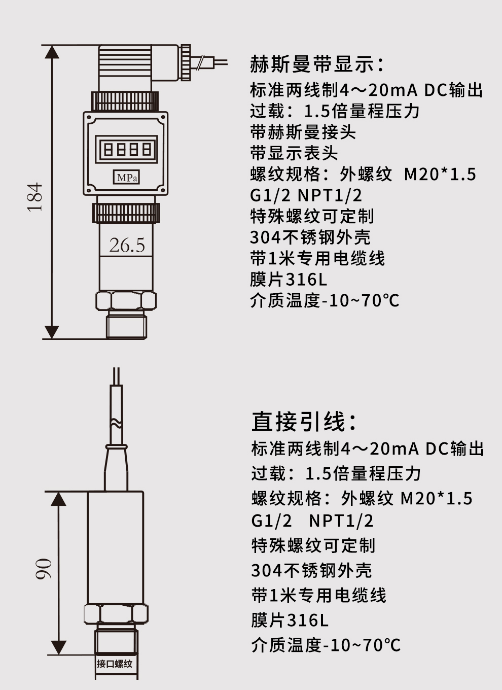 M系列小巧型壓力變送器內(nèi)部使用擴(kuò)散硅壓阻式傳感器,其結(jié)構(gòu)簡(jiǎn)單,體積小巧,易安裝;以其優(yōu)良的可靠性、適用性、靈活性和多樣性,廣泛的應(yīng)用于航空、航天、石油、化工、冶金、電力、水利等工業(yè)過(guò)程現(xiàn)場(chǎng)的壓力測(cè)量和控制。