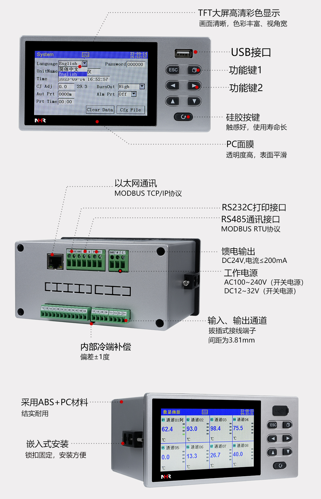NHR-7100T系列彩色無紙記錄儀是一款體積小巧、功能強(qiáng)大的無紙記錄儀。采用大屏高清真彩液晶屏為顯示 窗口,使產(chǎn)品具有顯示清晰、色彩豐富等特點(diǎn)。內(nèi)核采用高速、高性能32位ARM微處理器,操作簡便、響應(yīng)快 ,記錄存儲與控制功能強(qiáng)大,是一款功能齊全、操作方便、精確可靠、高性價(jià)比的產(chǎn)品,在各行各業(yè)中得到廣泛 應(yīng)用。