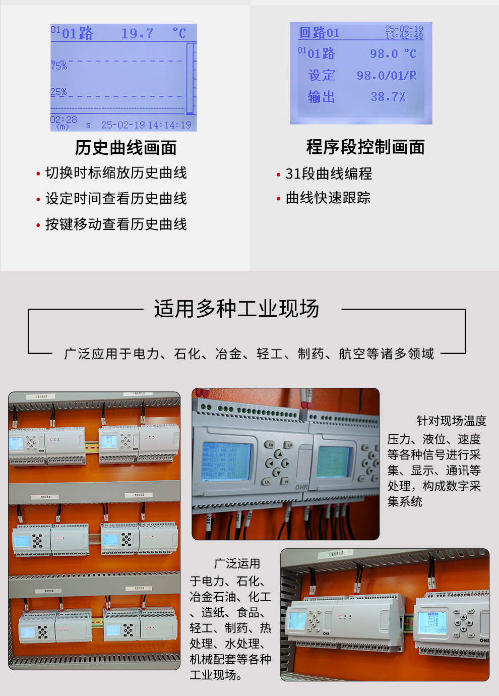 OHR-PR70系列溫度控制器采用真正的人工智能算式,儀表啟動(dòng)自整定功能,可以根據(jù)被控對象的特性,自動(dòng)尋找最優(yōu)參數(shù)以達(dá)到很好的控制效果,無需人工整定參數(shù)??販鼐然具_(dá)±0.1℃,無超調(diào)、欠調(diào),達(dá)國際先進(jìn)水平。可帶外給定(或閥位)控制,可取代伺服放大器直接驅(qū)動(dòng)執(zhí)行機(jī)構(gòu);可進(jìn)行編程控制,根據(jù)生產(chǎn)過程的要求,按照一定的程序曲線進(jìn)行控制,最多可分31段曲線對控制對象進(jìn)行監(jiān)測、控制、記錄與遠(yuǎn)傳。
