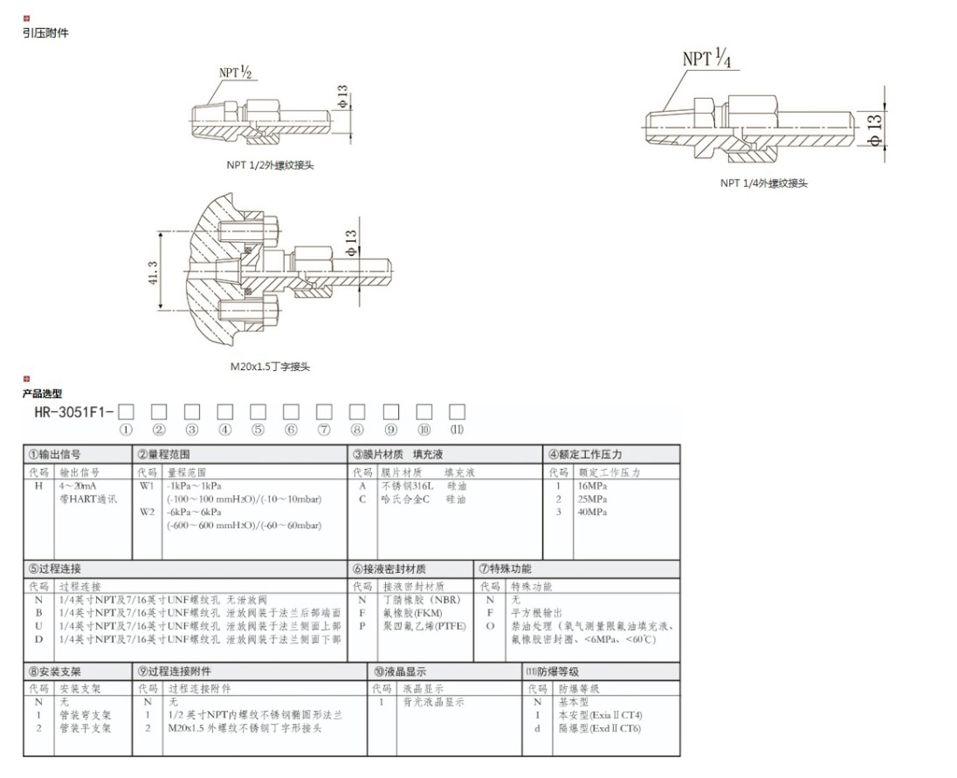 HR-3051F1智能單晶硅微差壓變送器能準(zhǔn)確的測(cè)量差壓,并把它轉(zhuǎn)換成4~20mADC的輸出信號(hào)。該變送器可通過(guò)三按鍵本地操作,或通用手操器、組態(tài)軟件、以及手機(jī)APP遠(yuǎn)程操作,在不影響4~20mA DC的輸出信號(hào)的同時(shí),進(jìn)行顯示與組態(tài)。