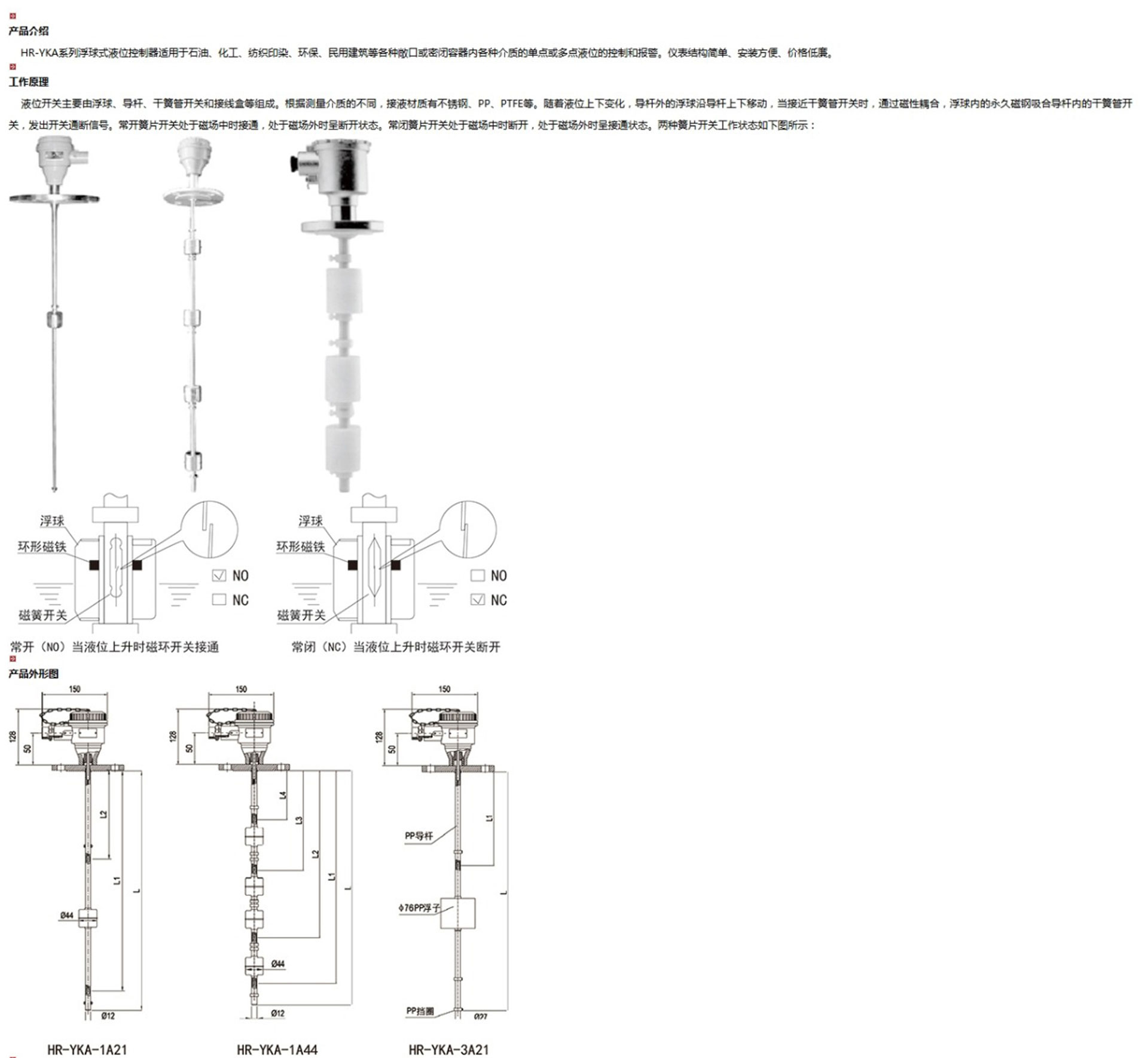 HR-YKA系列浮球式液位控制器適用于石油、化工、紡織印染、環(huán)保、民用建筑等各種敞口或密閉容器內(nèi)各種介質的單點或多點液位的控制和報警。儀表結構簡單、安裝方便、價格低廉。