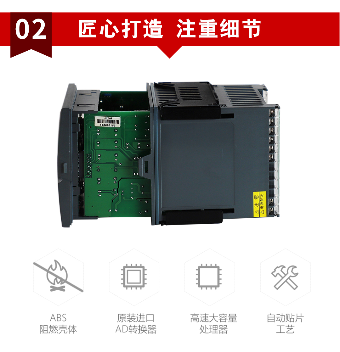 NHR-5400系列60段人工智能溫控器采用真正的人工智能算式,儀表啟動自整定功能,可以根據(jù)被控對象的特性,自動尋找參數(shù)以達到很好的控制效果,無需人工整定參數(shù)??販鼐然具_±0.1℃,無超調(diào)、欠調(diào),達國際先進水平。